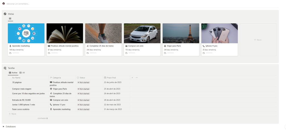 painel que irá te informar quantos dias faltam para finalizar aquele objetivo, e muito mais.